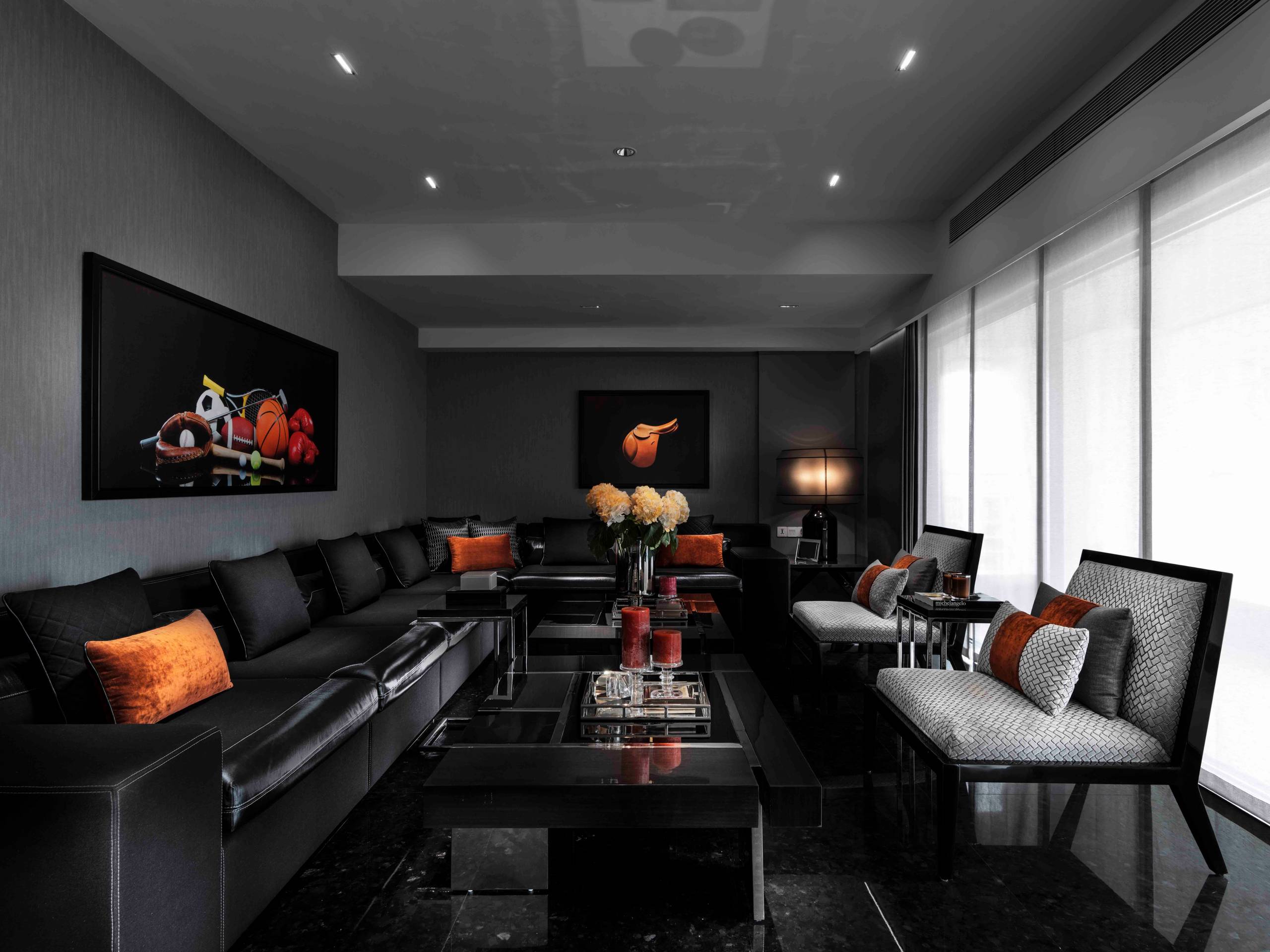 Dark but elegant — 2025 is all about using black in small but impactful ways.Use for: TV wall, shelves, trims, metal frames